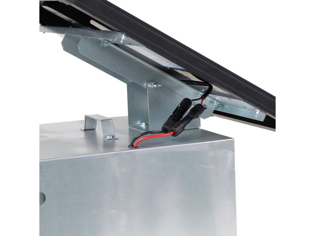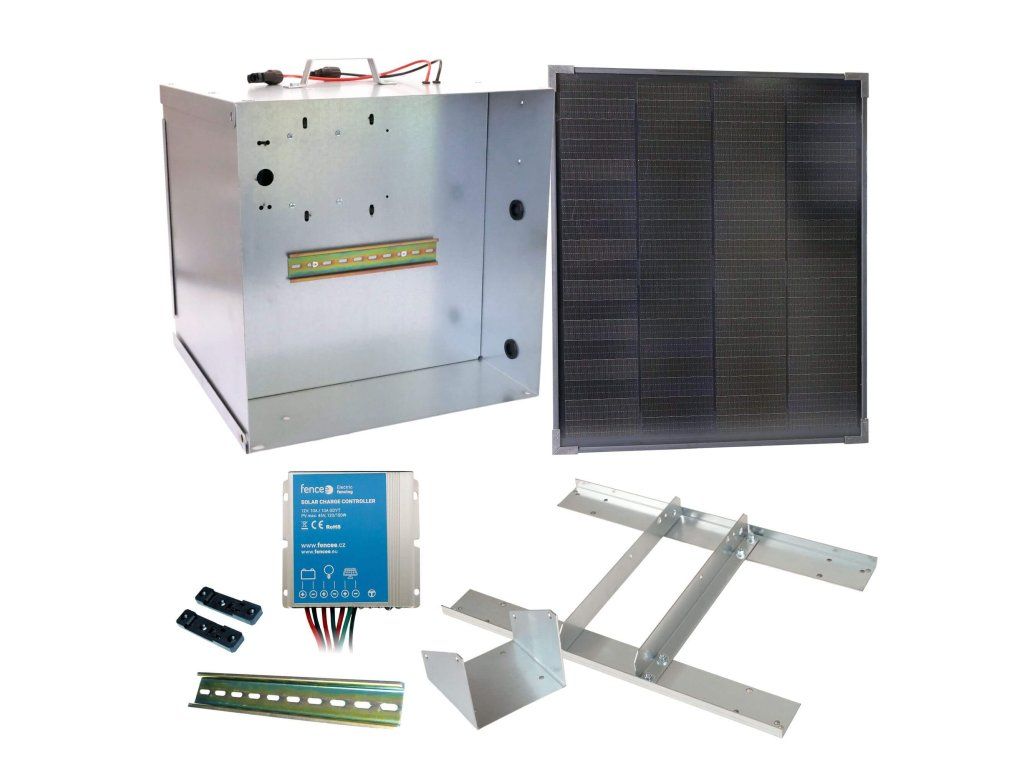 Obsahuje kompletní přenosnou schránku na zdroj ohrady/baterii s regulátorem 10 A pro solární panel 40 W. Schránka včetně DIN lišty pro uchycení generátoru fencee. Montážní konzole pro instalaci panelu na přenosnou schránku.