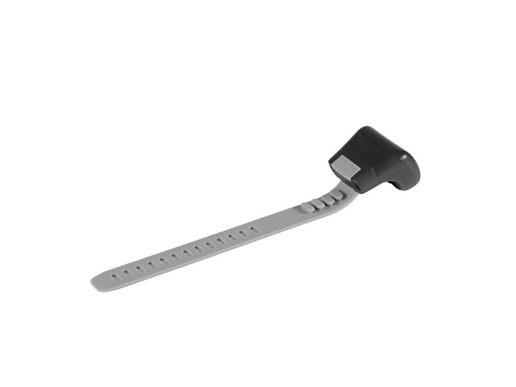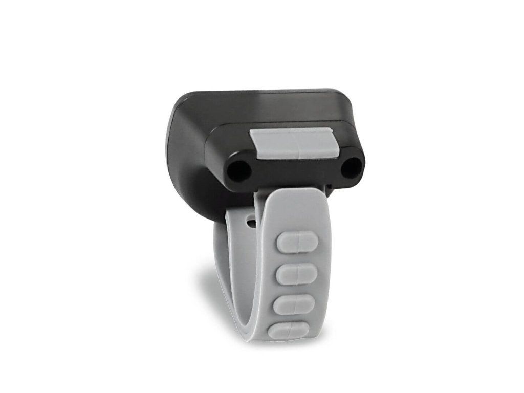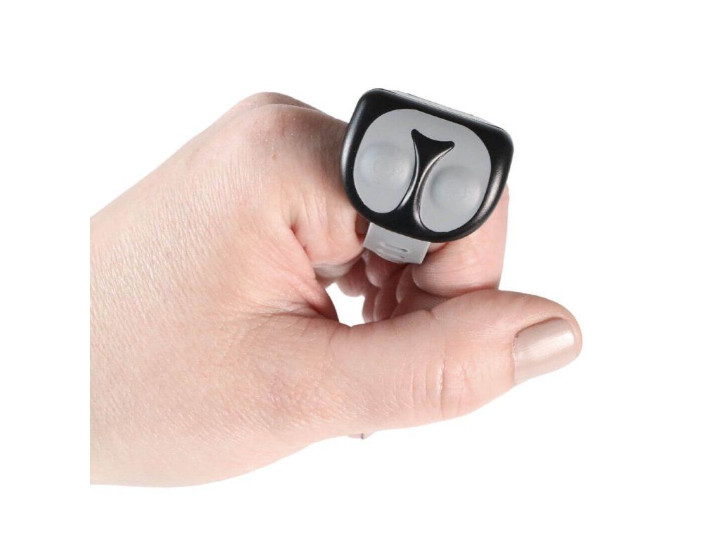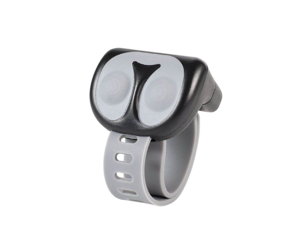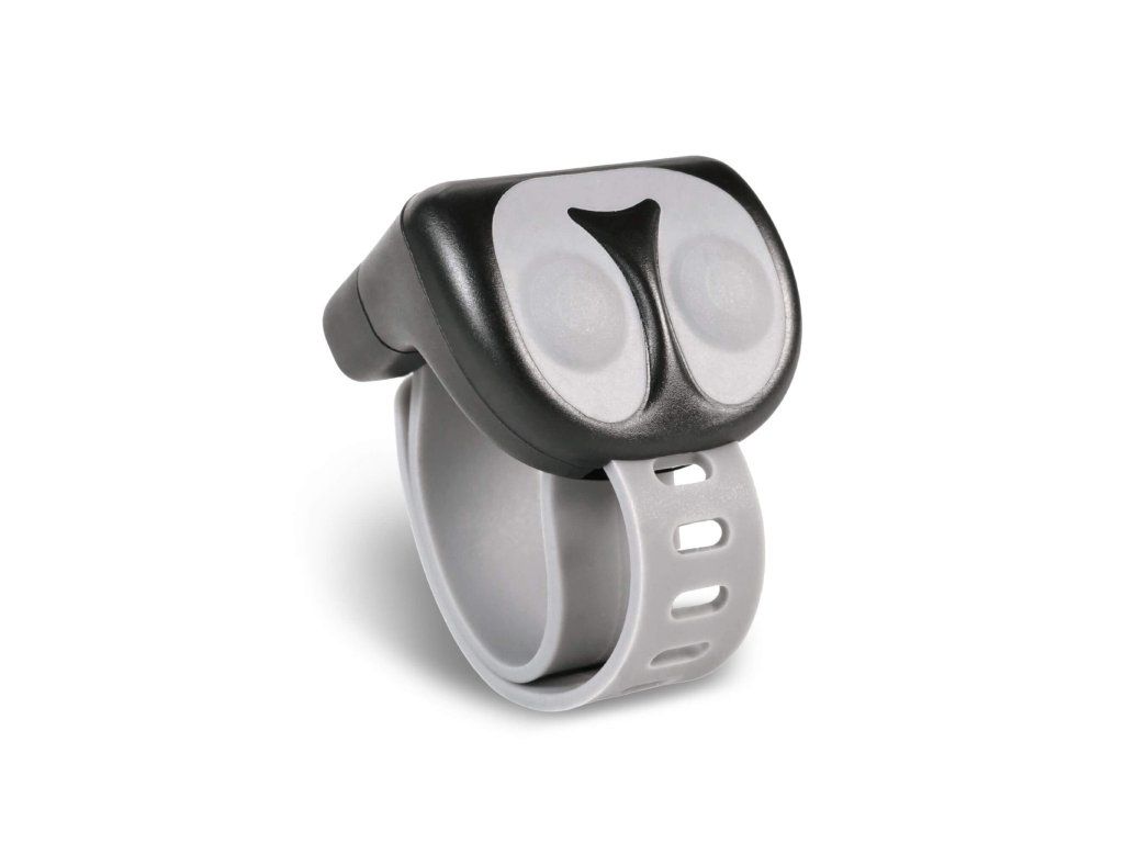 Kompaktní prstýnek je vyroben z vodotěsného těla a odolá každému počasí i terénu. Je opatřen příjemným silikonovým řemínkem s nastavitelným obvodem 5–10 cm. Lze jej připevnit i na řidítka koloběžky, kola či saní.