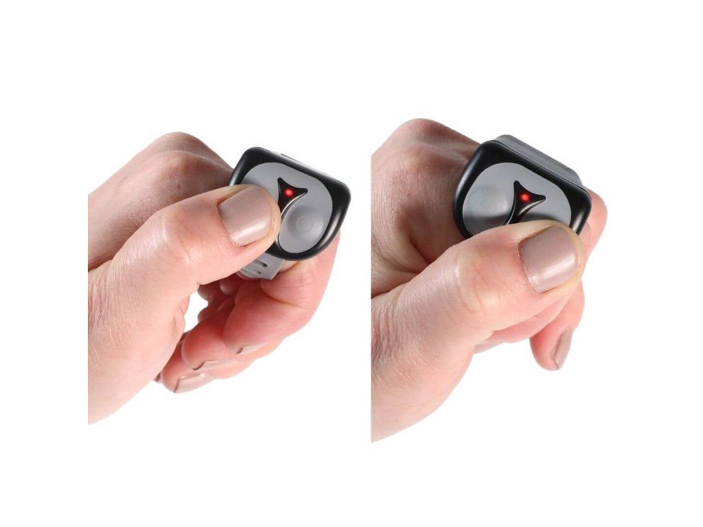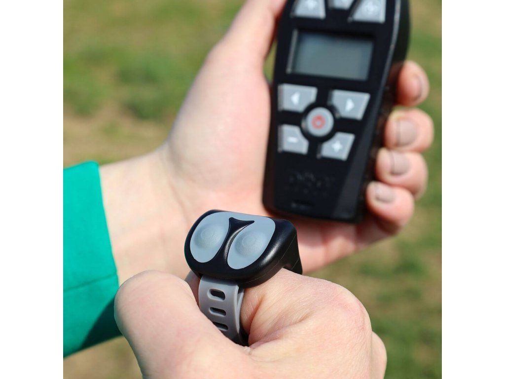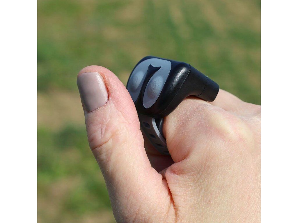 Věnujete se výcviku loveckého psa nebo se často proháníte se svou smečkou na kole či koloběžce? Teď už nemusíte řešit, kam s ručním ovladačem, ale můžete pohodlně komunikovat se svým pejskem pomocí miniaturního prstýnkového ovladače. Bezdrátová komunikace umožňuje vysílat signály z prstýnku do ručního ovladače až na vzdálenost 20 metrů.