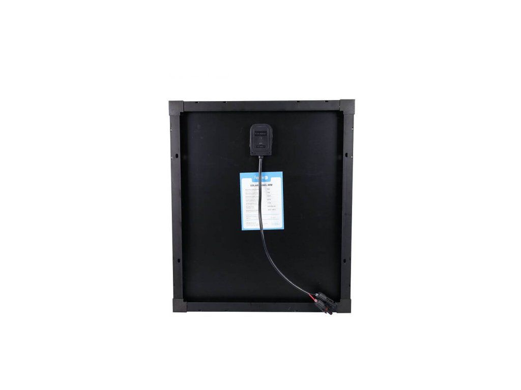 Kvalitní solární panel o výkonu 40 W zajišťuje průběžné dobíjení 12V baterie.