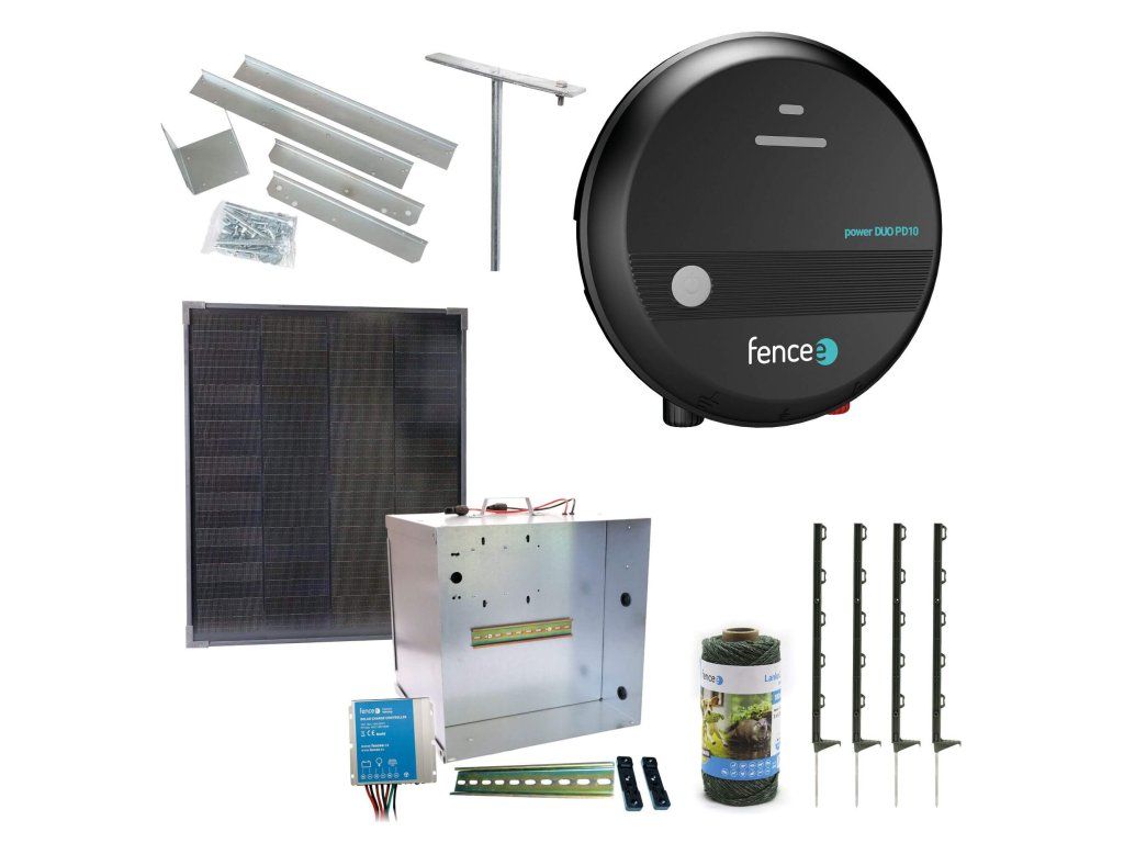 Obsahuje přenosnou schránku na zdroj a baterii s regulátorem a solárním panelem 40 W. Součástí sady je zemnící tyč, 100 m zeleného vodivého lanka a 20 ks mobilních plastových sloupků o délce 70 cm.