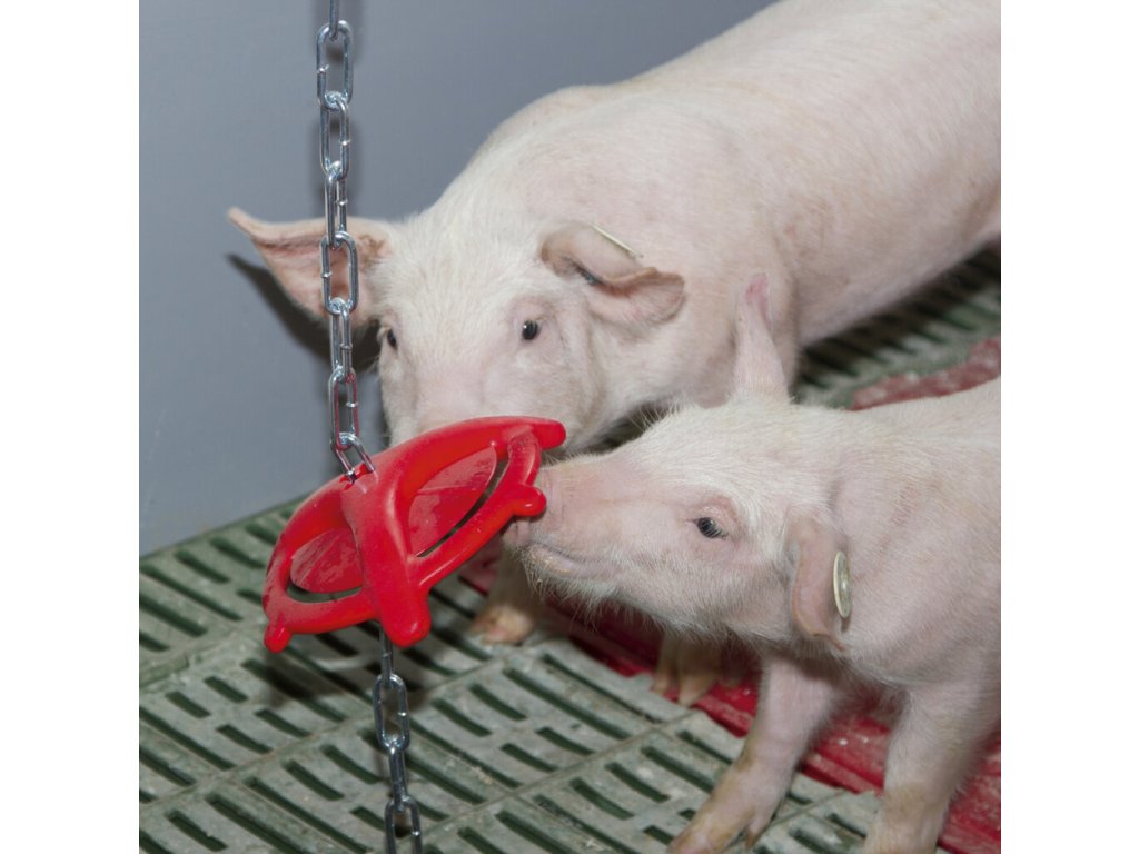 Tento robustní kousací kroužek o průměru 18 cm je vybaven řetízkem délky 75 cm. Pomáhá snížit agresivitu a stres selat tím, že je zabaví a odvede jejich pozornost. Díky materiálu odolnému proti kousání s pevným tvarem a vzpěrami se kroužek rychle neopotřebuje.