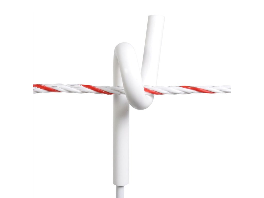 Bílý kovový sloupek s izolátorem krouceným očkem PIGTAIL. Plastový obal odolný proti vysokému napětí pro zaručení kvalitní izolace. Pro lanko, lano nebo drát. Tloušťka sloupku 7 mm. Rozšířitelné o další izolátory. Výhodné balení 9 + 1 zdarma.