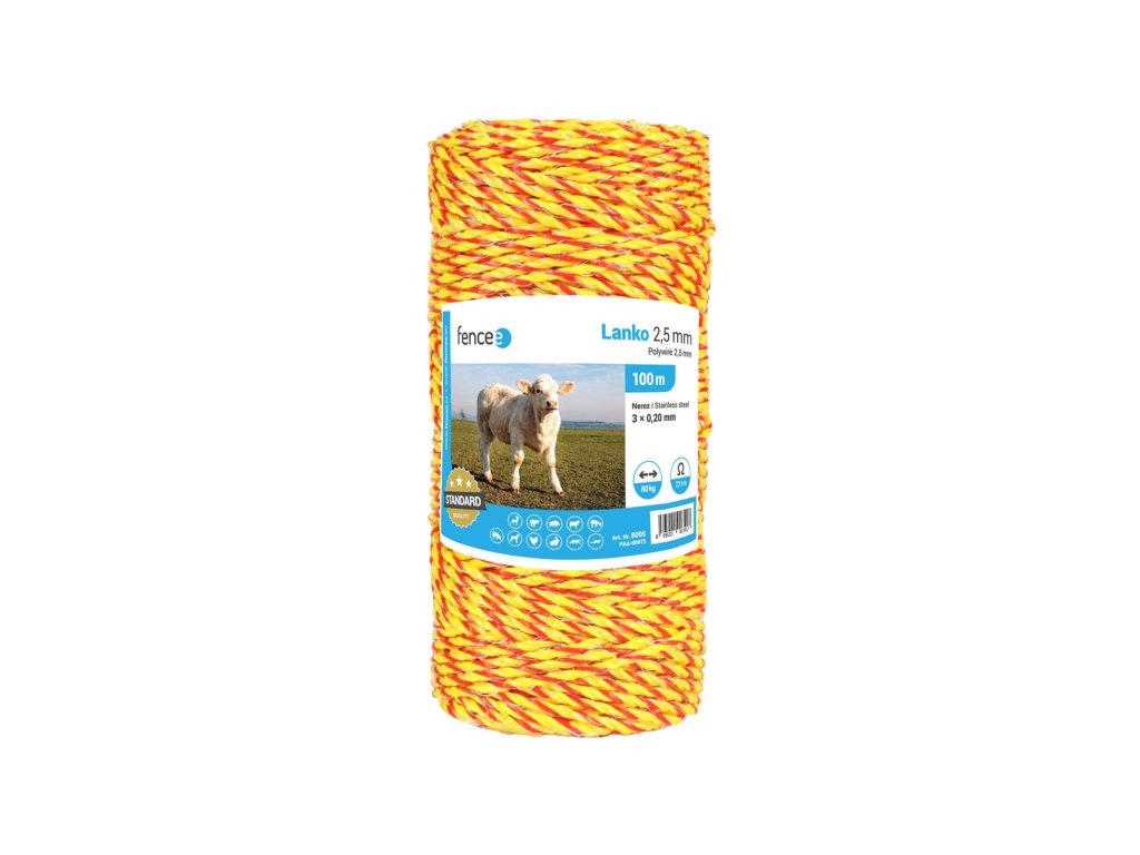 Lanko pro elektrický ohradník, průměr 2,5 mm, žluto-oranžová 100 m