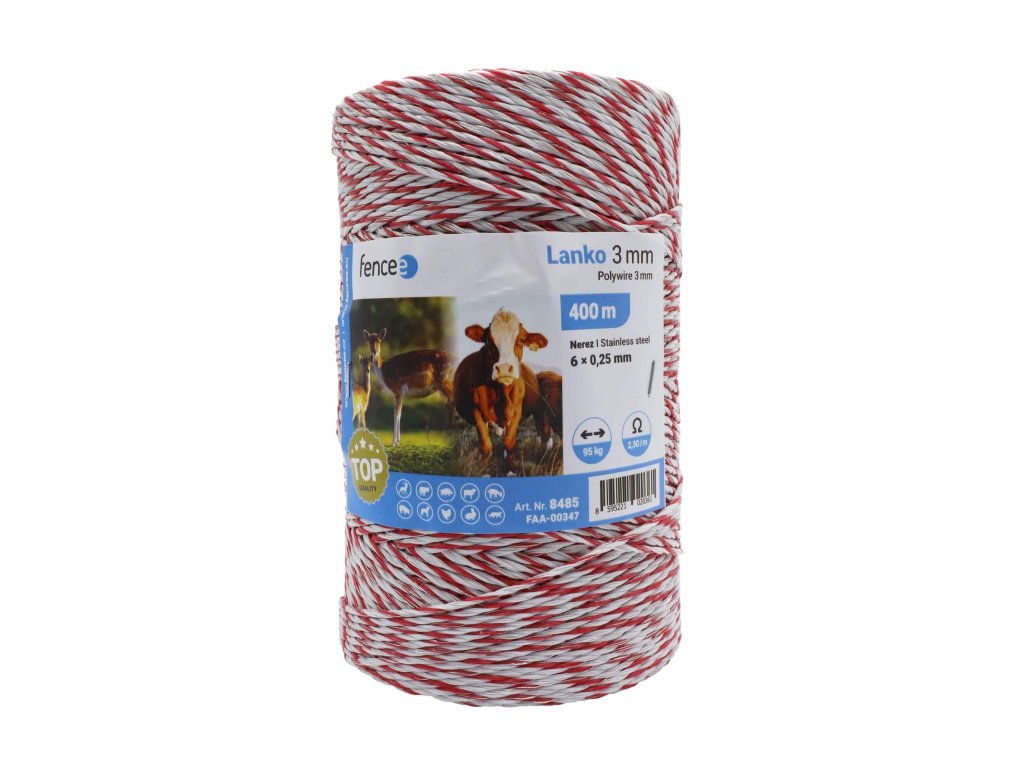 Lanko pro elektrický ohradník, průměr 3 mm, bílo-červené, 400 m
