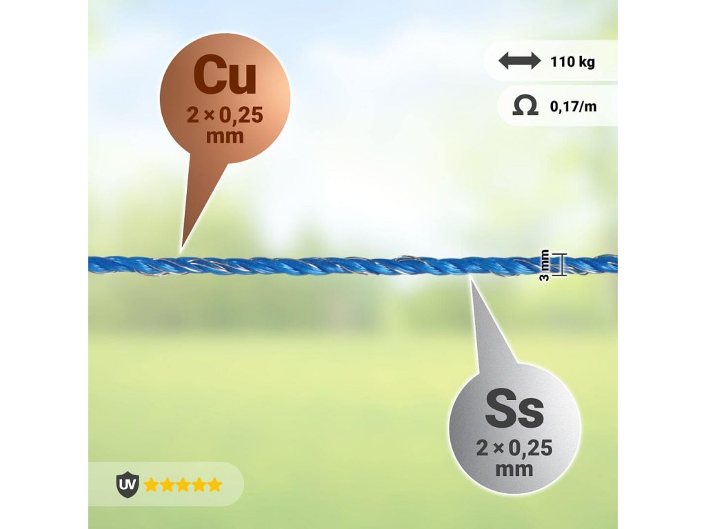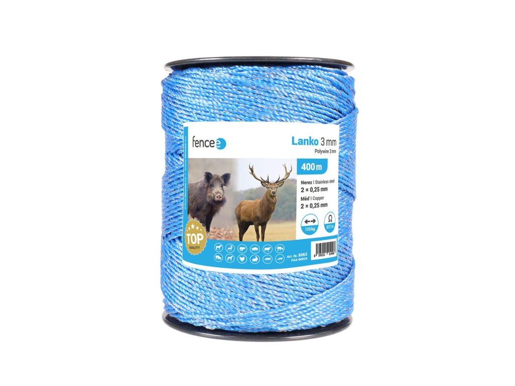 Lanko pro elektrický ohradník, průměr 3 mm, modré, délka 400 m, 0,17 Ω/m