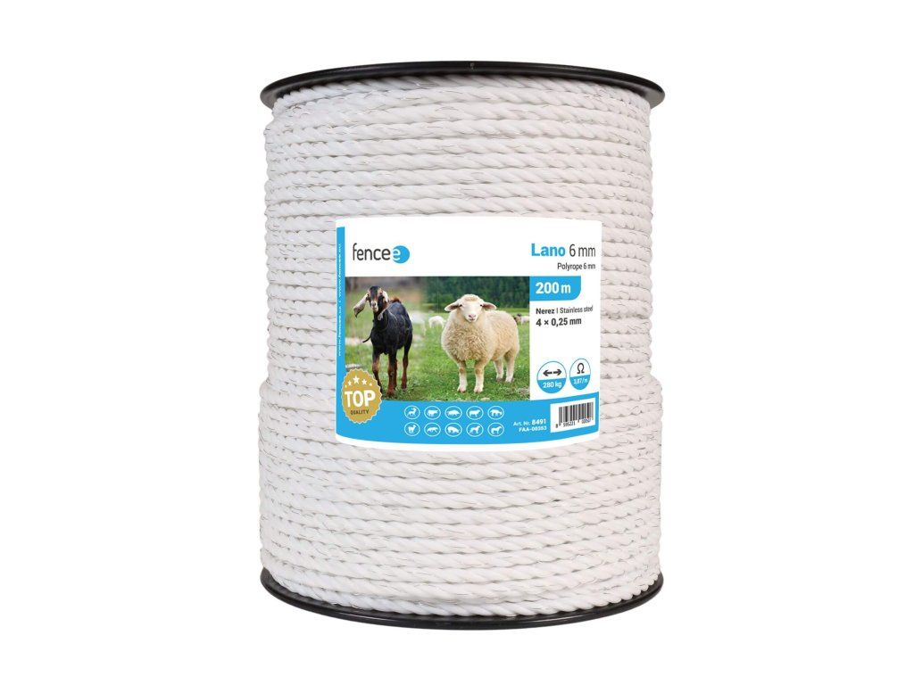 Lano pro elektrický ohradník, průměr 6 mm, bílé, délka 200 m