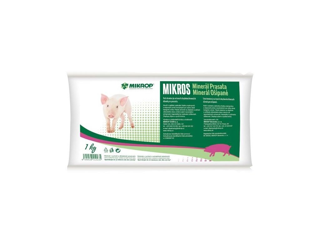 Mikros Minerál Prasata je kvalitní minerální doplněk určený pro odchov selat a výkrm prasat. Zajišťuje optimální hladinu makroprvků a stopových prvků, které jsou nezbytné pro zdraví, růst a reprodukční schopnosti prasat ve všech fázích vývoje.