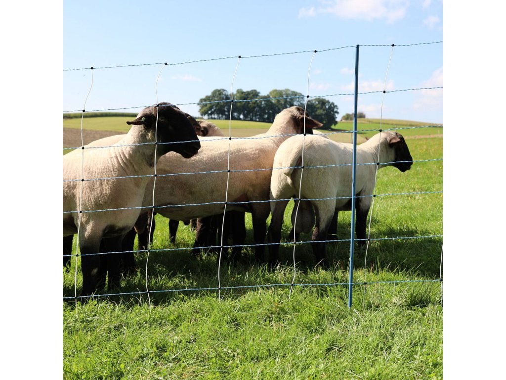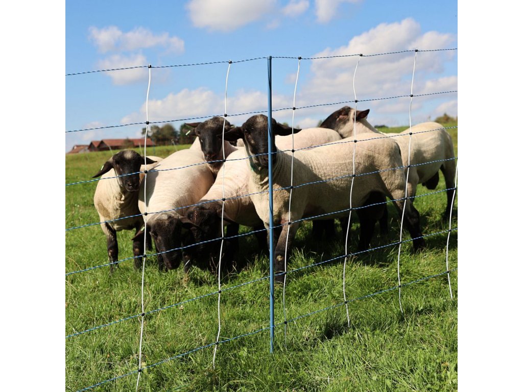 Speciální modrá síť proti vlkům na elektrický ohradník pro ovce. Vertikálně jsou místo měkkého lankového materiálu použity tuhé plastové vzpěry. Ty jsou pevně spojeny s vodorovnými prameny ve vzdálenosti 30 cm a zajišťují tak mimořádnou stabilitu i na kopcovitém a nerovném terénu.