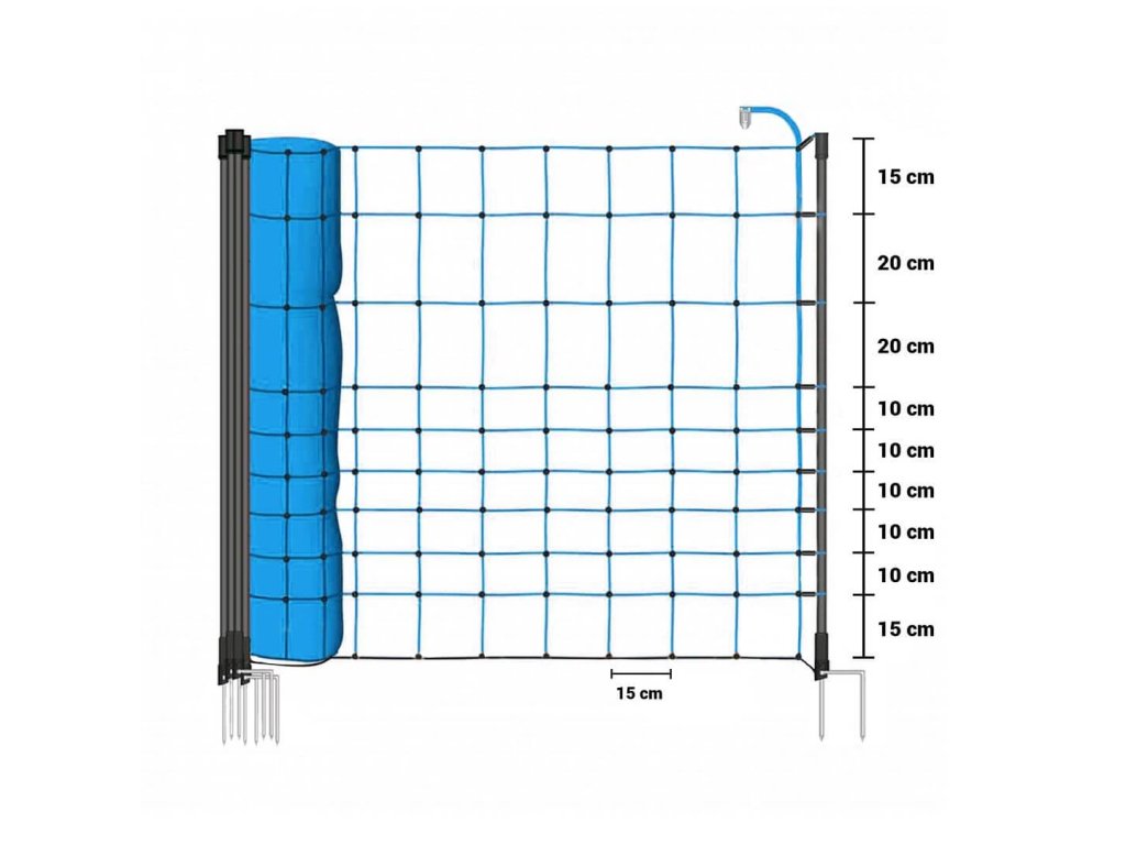 Modrá vodivá síť STANDARD pro elektrický ohradník proti vlkům, výška 120 cm, 50 m, dvojitý hrot