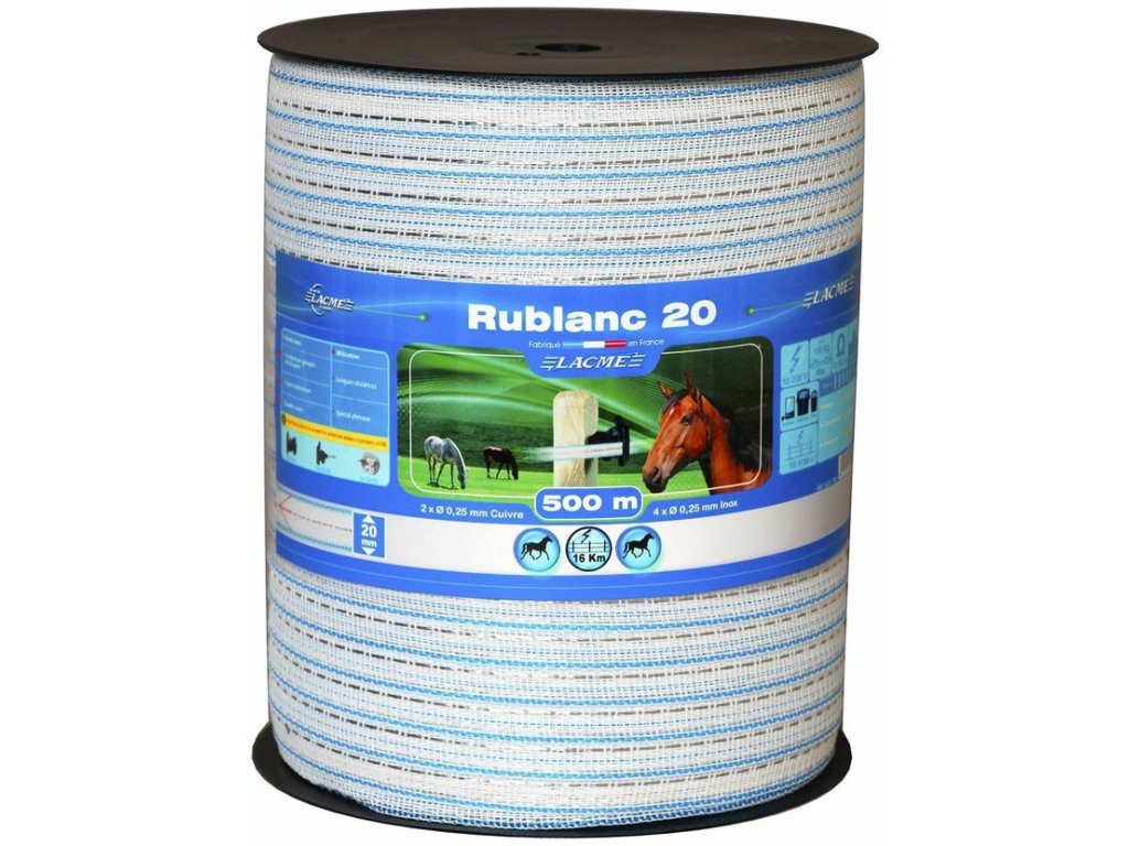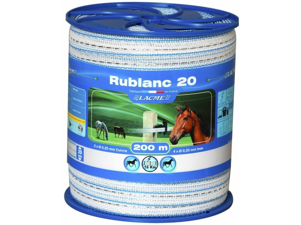 Ohradníková páska RUBLANC 20 mm 200 m bílá/modrá
