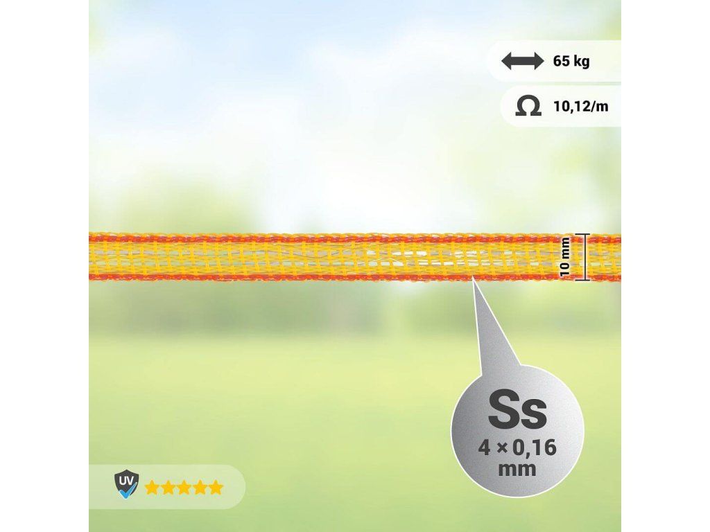 Páska pro elektrický ohradník, šířka 10 mm, žluto-oranžová, délka 250 m