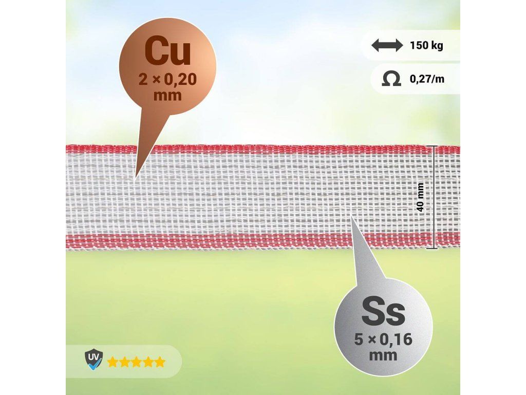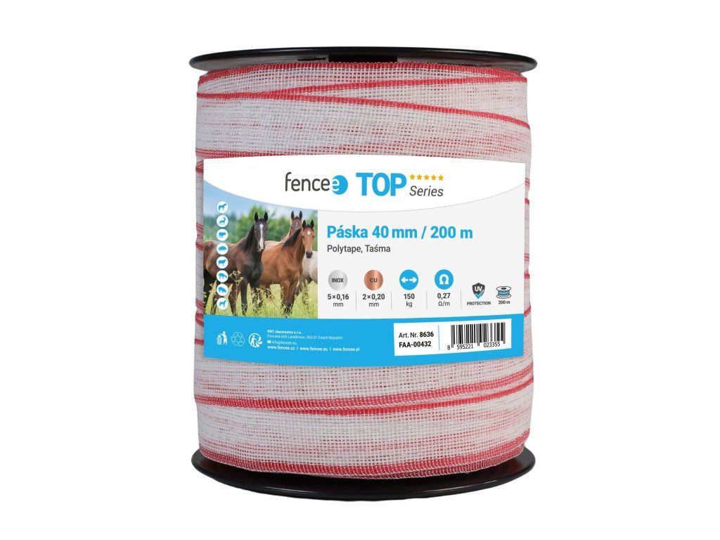 Páska pro elektrický ohradník, šířka 40 mm, bílo-červená, 200 m, 0,2 Ω/m