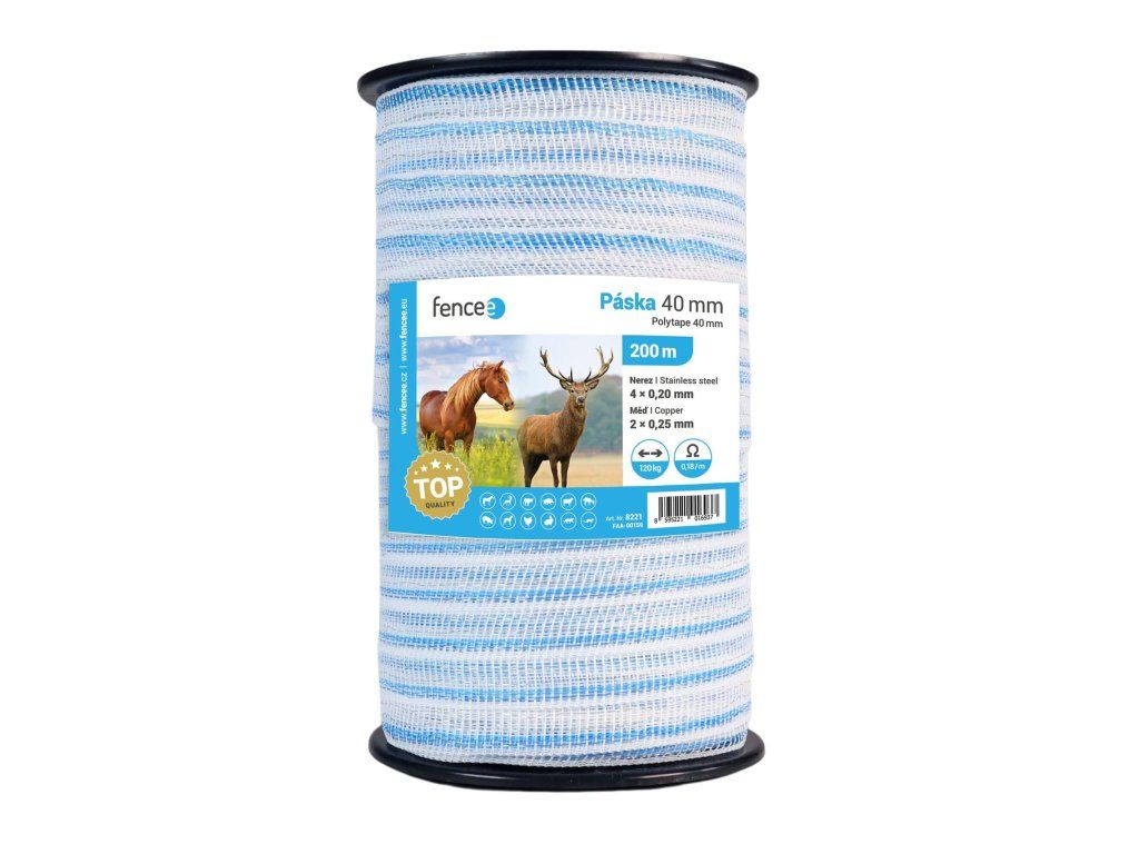 Páska pro elektrický ohradník, šířka 40 mm, bílo-modrá, délka 200 m