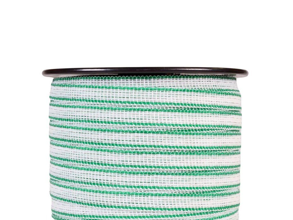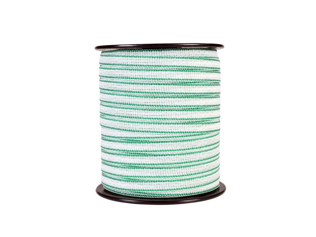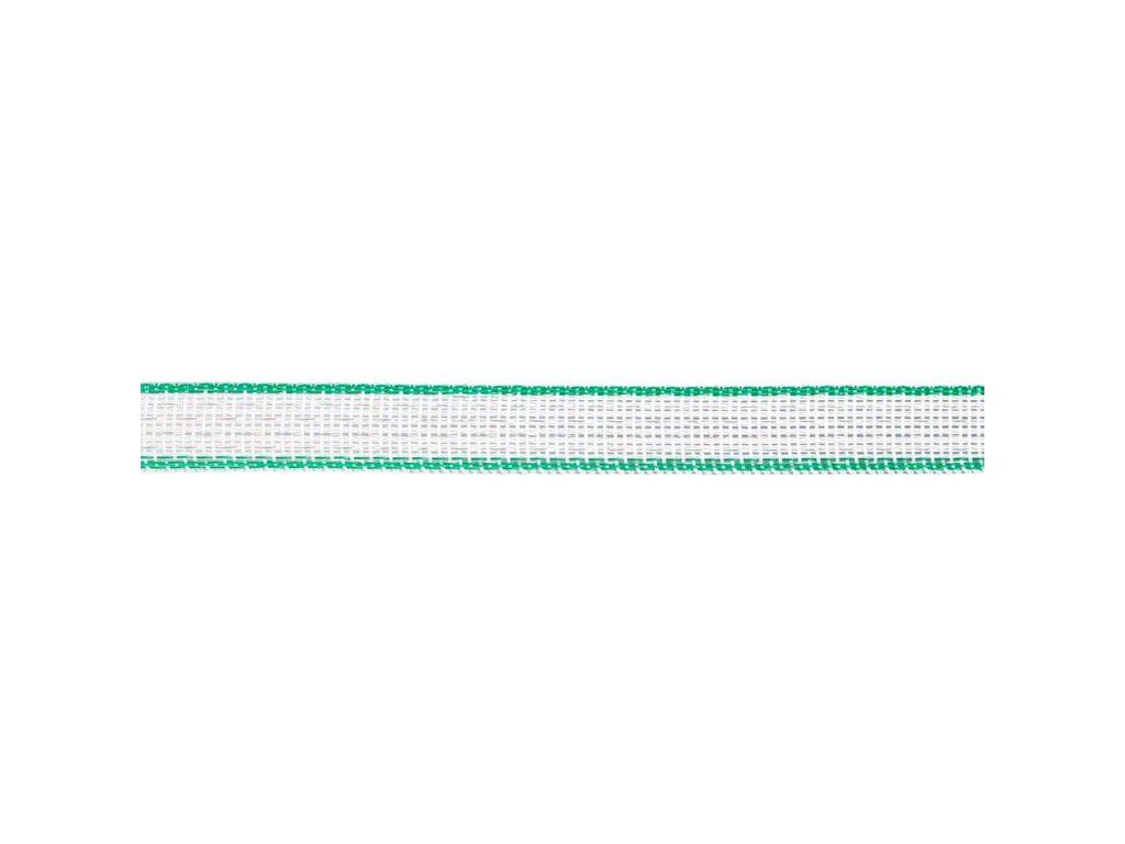 Páska pro elektrický ohradník 12,5 mm, bílo-zelená, 200 m, 0,5 Ω/m