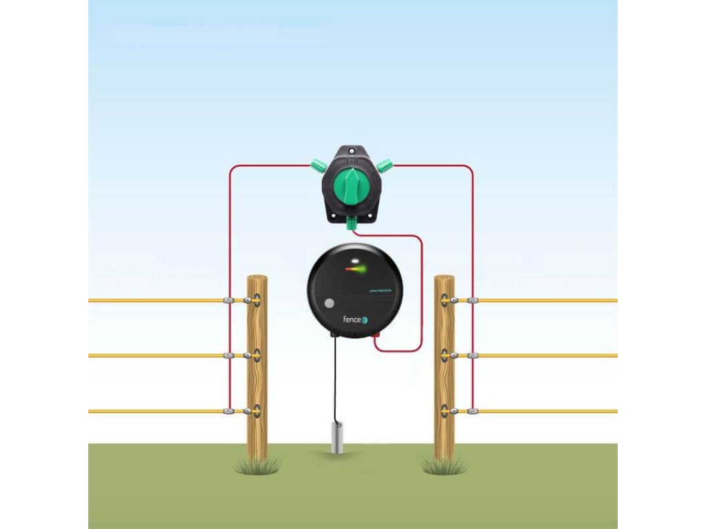 Přepínač instalujte na ohradník na několik vhodných míst. Tím si umožníte vypínat jednotlivé části ohrazení podle potřeby, např. při opravě vedení nebo při průchodu.