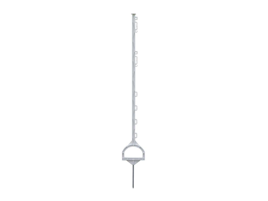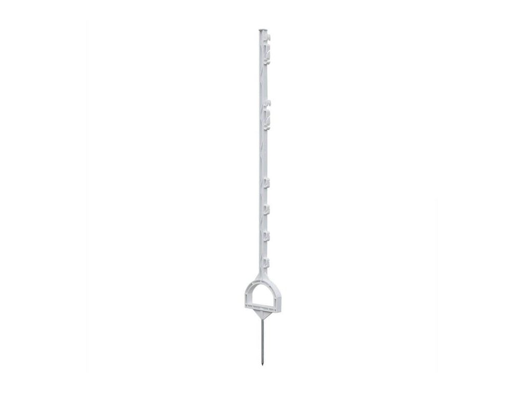 Praktický plastový sloupek s nášlapným třmenem pro elektrický ohradník v bílé barvě s 10 očky pro běžné vodiče ohradníku. Robustní provedení s vyztužením ze skelných vláken dělá sloupek velmi odolným proti ohýbání a zlomení. Kvalitní kovová špice s třmenem zajišťují velmi snadnou instalaci. Celková výška sloupku 115 cm, výška nad zemí 96 cm.