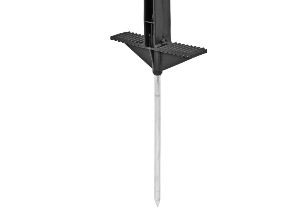 Mobilní plastový sloupek s dvojitým nášlapem pro elektrický ohradník v modré barvě s 11 očky pro běžné vodiče ohradníku. Vysoce kvalitní materiál s vyztužením ze skelných vláken a vysokou UV stabilitou je odolný proti ohýbání a zlomení. Robustní kovová špice. Celková výška sloupku 156 cm, výška nad zemí 135 cm.