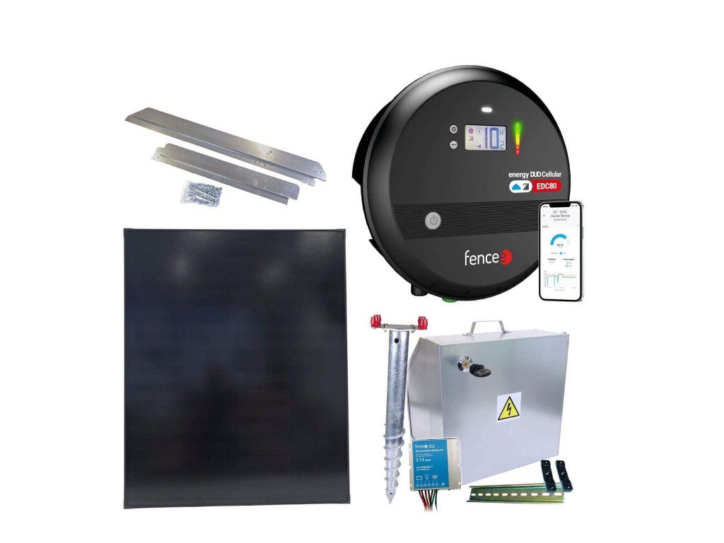 Kompletní sada solárně napájeného ohradníku s chytrým LTE zdrojem 230/12 V o výkonu 8 J. Obsahuje kompletní bezpečnostní schránku na zdroj ohrady a baterii + regulátor pro solární panel 200 W.