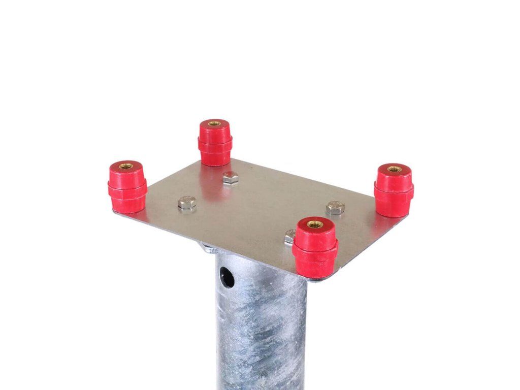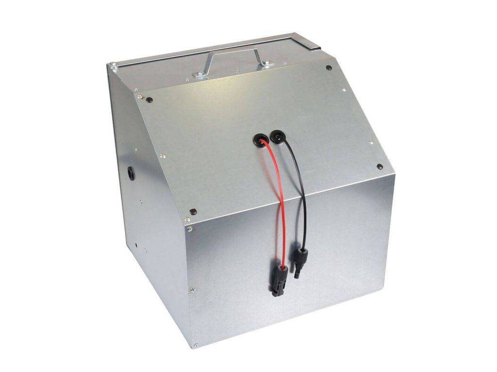 Elektrifikovatelná kovová akumulátorová schránka s robustním montážním trnem. Schránku lze napojit na zdroj ohradníku, poté je pod napětím – ochrana proti krádeži.