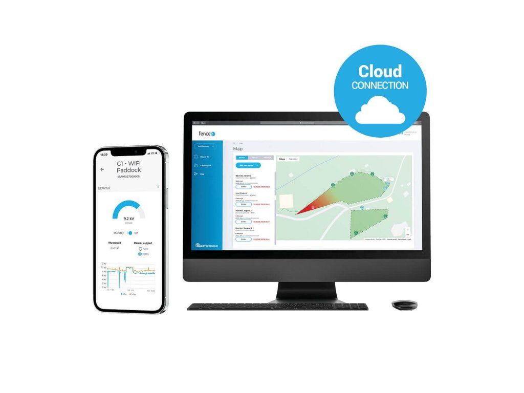 - Aplikace fencee Cloud: Přehled o napětí a výkonu ohradníku v mobilu, včetně varovných upozornění.