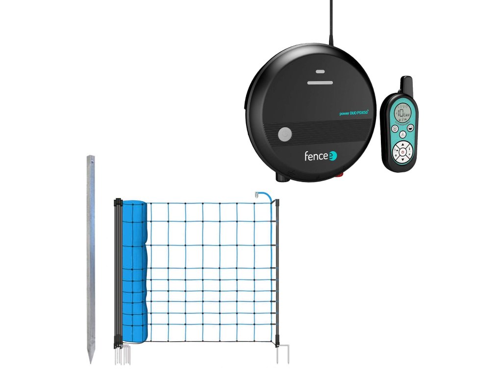 Sada obsahuje kombinovaný generátor fencee power DUO RF PDX50 s dálkovým ovladačem. Výkon 5 J umožňuje napojení několika sítí najednou.