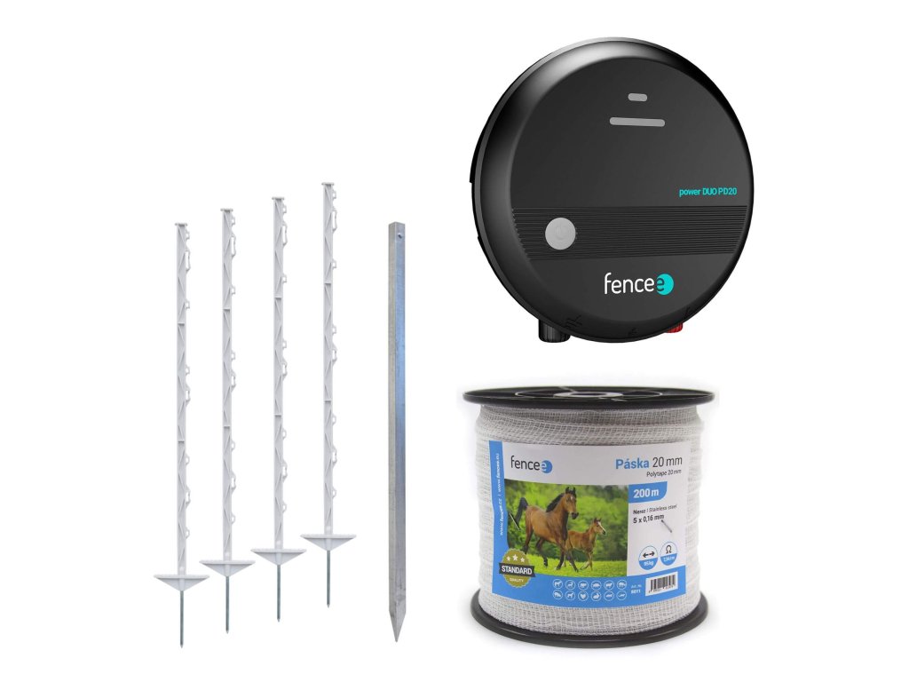- Kompletní sada s kombinovaným generátorem fencee power DUO PD20 o výkonu 2 J.
