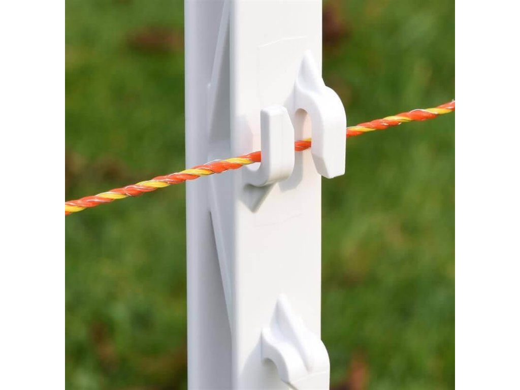 - Mobilní sloupky: 10 ks plastových sloupků s 8 očky a pevnou kovovou špicí umožní instalaci vodiče do výšky až 86 cm nad zemí.