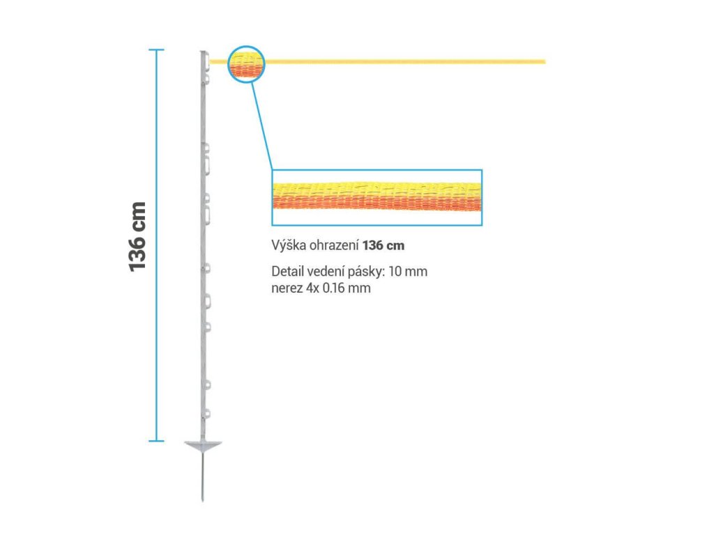 S plastovými mobilními sloupky se zpevněným profilem a silnou špicí, vytvoříte výšku ohrazení až 136 cm nad zemí.