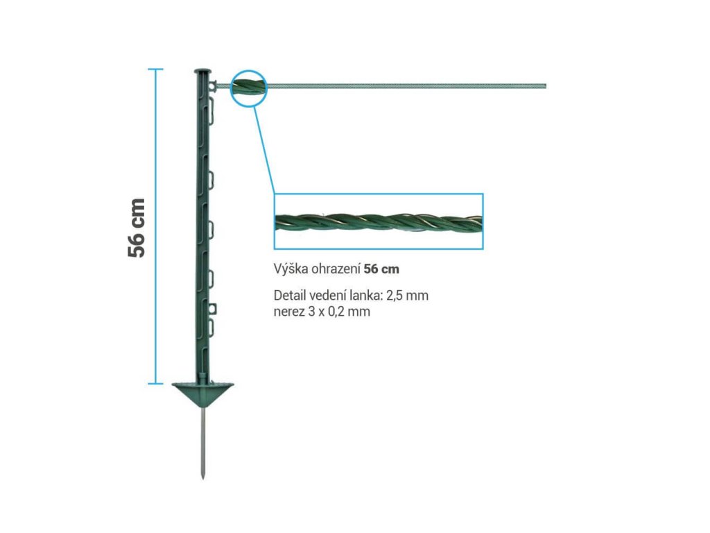 Pevné zelené plastové sloupky vám umožní instalovat vodič do výšky až 56 cm.