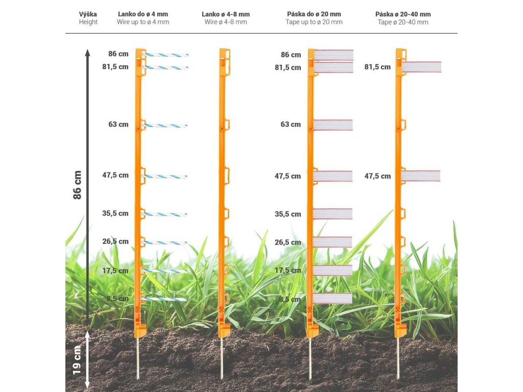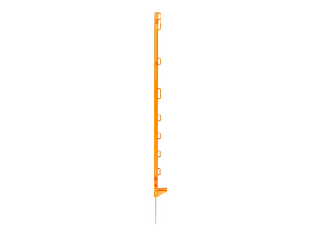 Univerzální plastový sloupek s 8 očky pro vymezení prostoru elektrického ohradníku. Díky oranžové barvě je sloupek velmi dobře vidět pro lidi i zvířata. Délka 105 cm / nad zemí 86 cm. Obsahuje skleněná vlákna (odolnost proti zlomení). Kovový hrot. Stabilní díky podélnému vyztužení. Skvělý poměr ceny a výkonu.