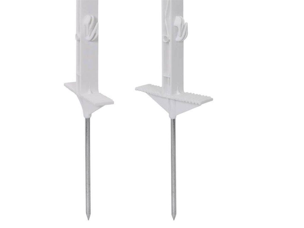 Vysoké bílé plastové sloupky na elektrický ohradník jsou vhodné pro větší zvířata, jako jsou poníci, koně, skot, kozy. S 11 očky jsou univerzálním řešením s flexibilním použitím.