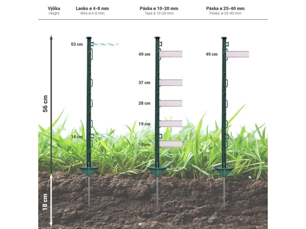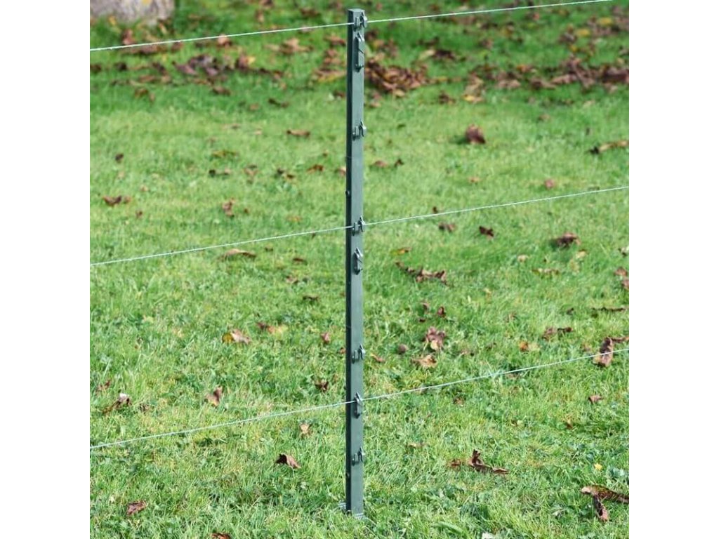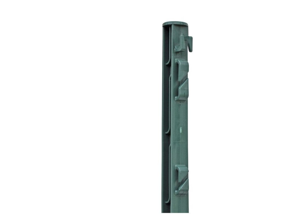 Robustní plastový sloupek s ochranou proti kroucení. 7 oček pro vymezení prostoru elektrického ohradníku. Délka 74 cm / nad zemí 56 cm. UV ochrana. Přírodní zelená barva. Obsahuje skleněná vlákna (odolnost proti zlomení).