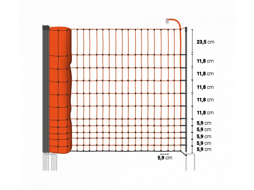 Elektrická síť s 16 tyčemi má 11 vodorovných vodících lanek s 3 × 0,20 mm silným nerezovým vodičem. Spodní řada (černé lanko) je nevodivá, izoluje. Vzhledem k drobnějším okům a celkové výšce je vhodná pro drůbež, husy, kachny, krůty nebo jiná zvířata, např. větší psy.